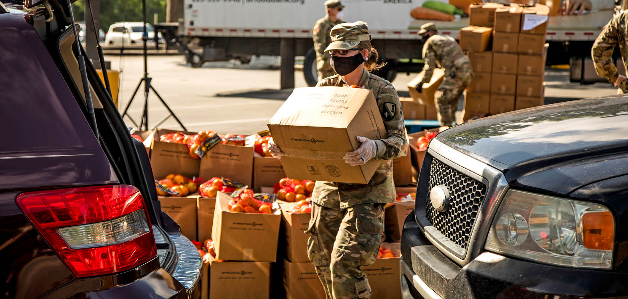 Folks drive up where National Guard and volunteers put the boxes in their cars to.